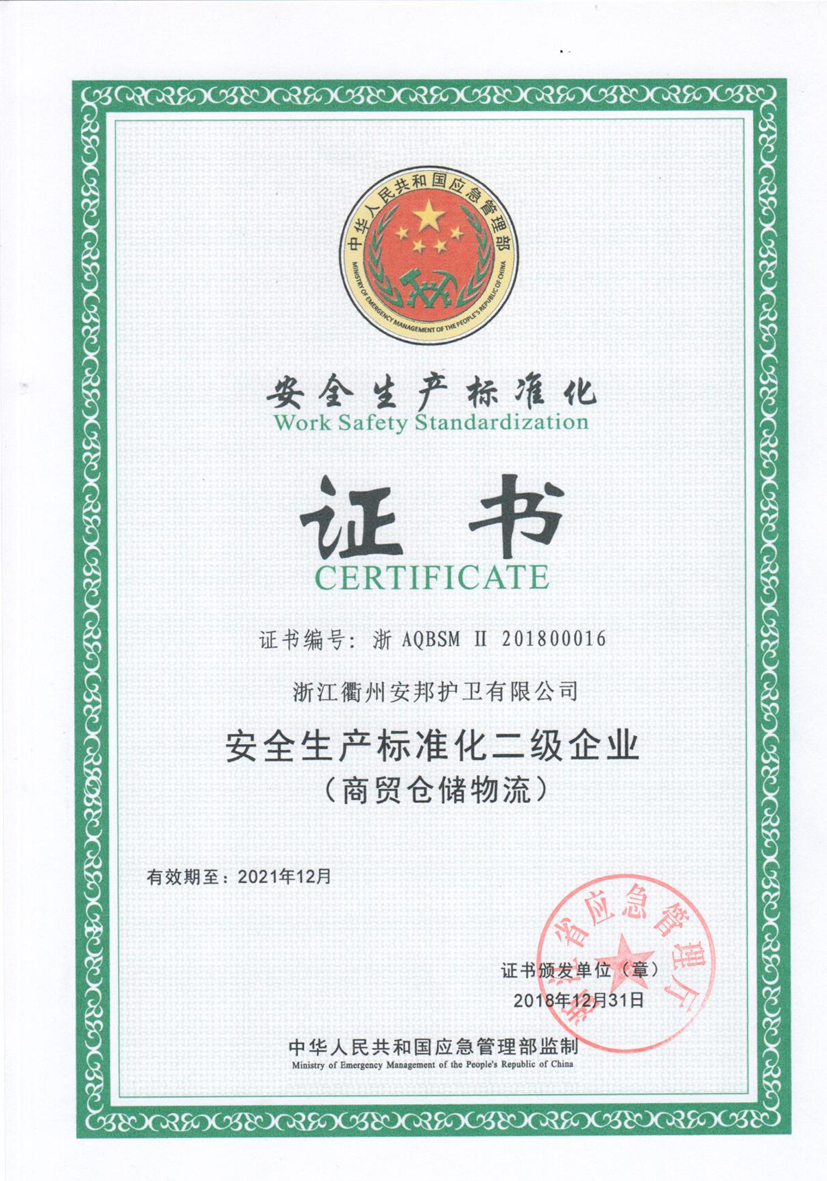 在历时8个月的高标准、严要求的规范化改进提升后,经浙江省安全生产标准化技术委员会专家全面、公正地评定,公司以80.4分的优异成绩通过了安全生产标准化二级企业的评审。