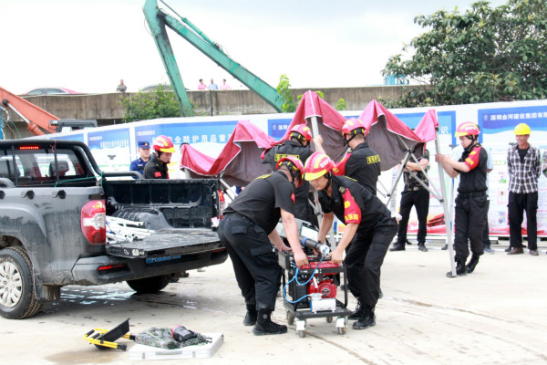 救援队主要从决堤抢险、紧急排涝等方面,模拟了防汛应急处置,圆满完成了演练任务。