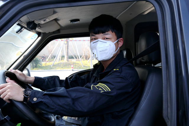 陈东同志是湖北省随县人,父母之前都在温州工作,儿子上小学后由母亲带回随县老家照看。这个春节,妻子回四川岳父母老家,他原打算待春节押运高峰结束后与在温州机场工作的父亲一起回湖北,但突如其来的疫情打断了他的返乡之路。“家乡的疫情形势很严峻,即使我冒着风险同家人团圆,归来后却将为公司带来更大的风险,我不能这么自私,而且公司对我们这些不能返家的员工很照顾,想方设法采购了大量口罩、消毒液等物资,保障押运过程中的防护安全,食堂使用一次性餐盒提供两荦一素饭菜,内部实施了严格的消毒和体温测量,我在这里很安心。”陈东说。问他最大愿望是什么时,他说希望疫情过后能和妻子、父亲一起回家看母亲和儿子。