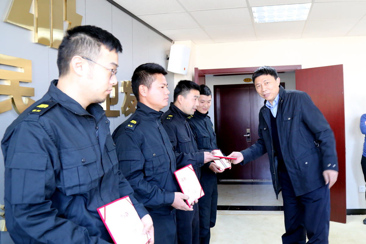 温州市保安协会会长邵曳戎一行莅临温州公司为员工颁奖