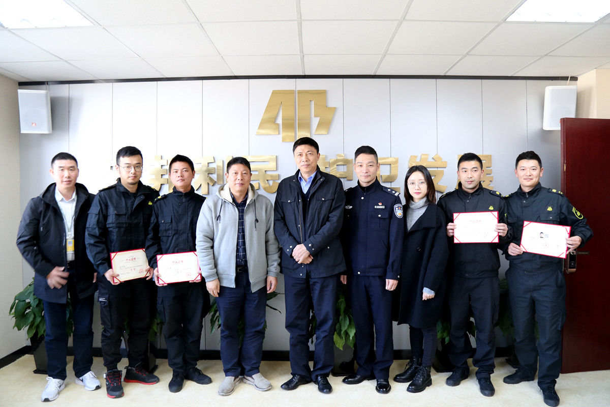 最后,邵会长向获得温州市第二届保安员职业技能竞赛个人获奖的杜昉亮等4名员工颁发荣誉证书和相关职业资格证书。