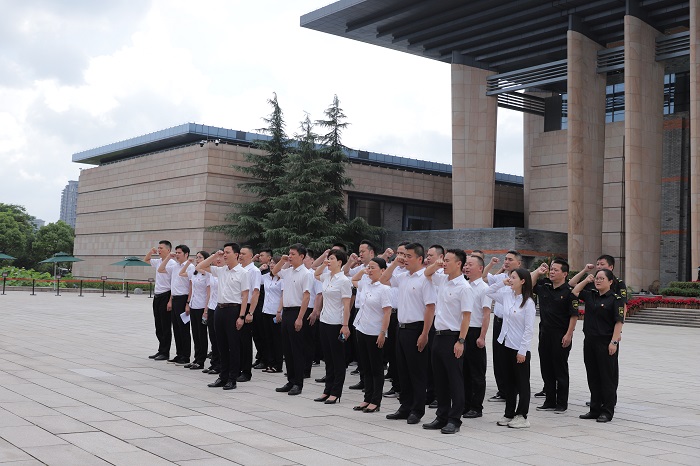 “我志愿加入中国共产党,拥护党的纲领,遵守党的章程…”在南湖革命纪念馆的宣誓墙前,公司党委书记、董事长、总经理韩光华同志带领全体党员面向党旗、举起右拳进行集体宣誓,重温入党誓词。