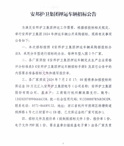 香港六合彩资料(中国)官方网站 押运车辆招标公告