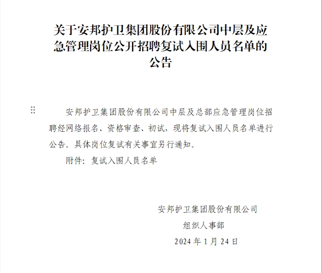 关于香港六合彩资料(中国)官方网站 中层及应急管理岗位公开招聘复试入围人员名单的公告