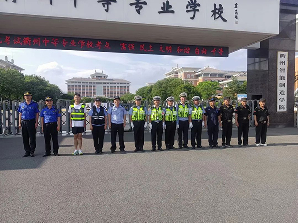 保安公司负责衢州一中、衢州二中、衢州三中、衢州高级中学、衢州中专等考点的安保工作,为考生营造良好的考试环境。