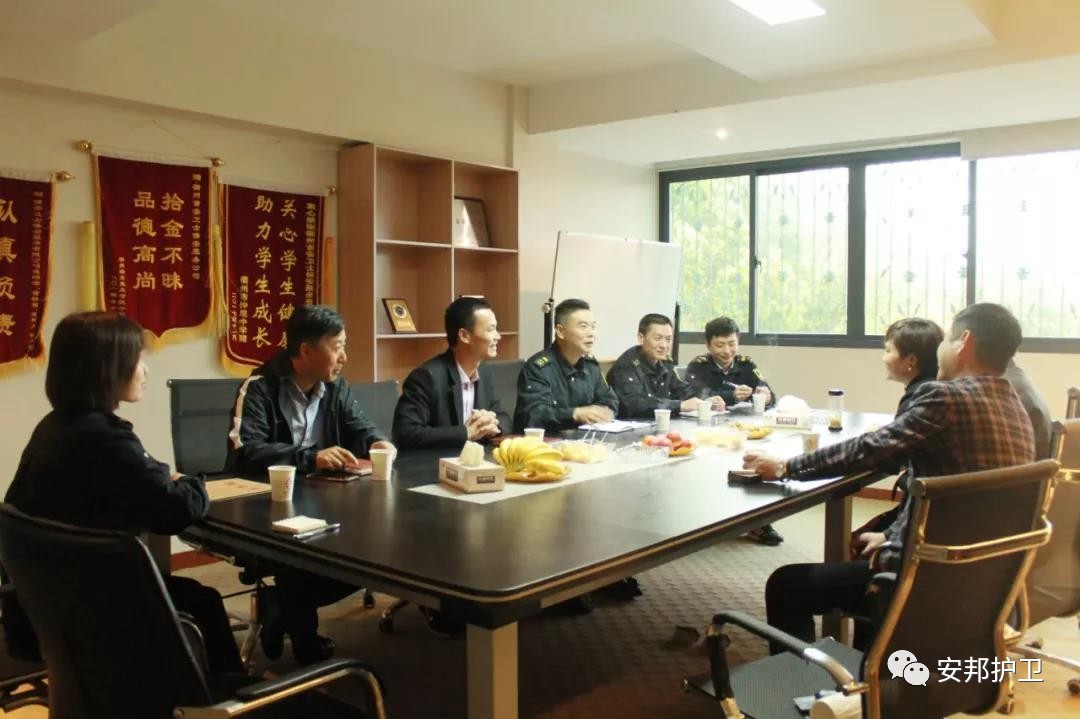 保安服务公司总经理鲁家富一行前往衢州首安卫士保安服务有限公司进行业务交流。双方相互介绍了公司的发展现状、运营管理模式、保安队伍管理等情况,并就日常工作中遇到的困难和问题进行了沟通探讨,相互借鉴、学习,以寻求更好的解决方法,开创保安工作更加美好的未来。