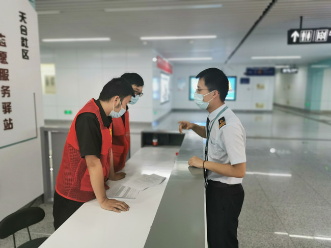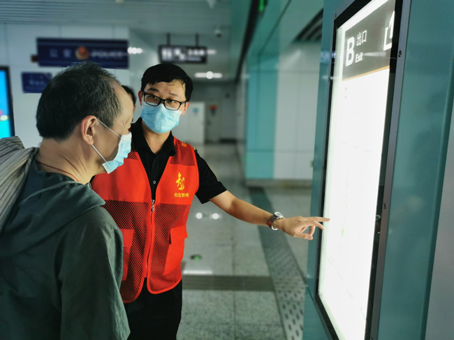 志愿服务期间,大家根据安排,在地铁站出入口引导乘客有序进出车站,提醒乘客安全乘坐扶梯、按疫情防控要求佩戴口罩。遇到老人、孕妇及携带大件行李的乘客时,主动将乘客引导至无障碍电梯口。为线路不熟的乘客提供指引,帮助他们选择合理的路线。