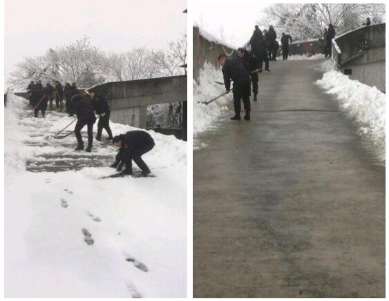 公司组织党员干部和团员青年志愿者积极投入到“抗击冰雪、温暖寒冬”铲雪工作中,在附近城南实验学校门口清扫道路积雪。