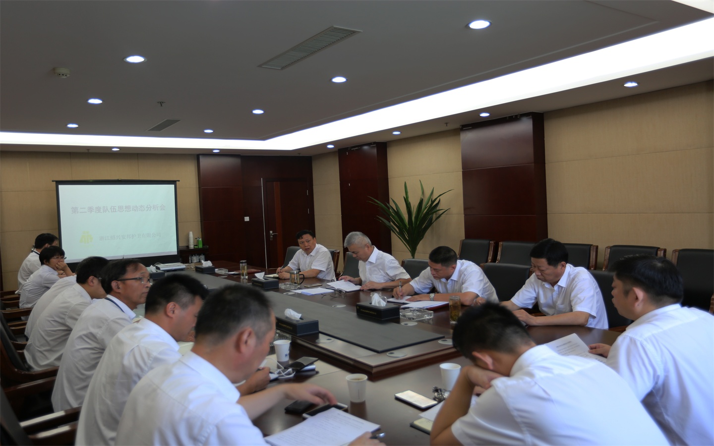 8月7日上午,绍兴香港六合彩资料 公司召开第二季度队伍思想动态分析会,公司党委书记、董事长、总经理胡秀荣,副总经理陈良、王天飞、纪委书记董礼财,三个大队、行政各部门主要负责人参加。