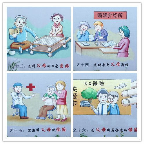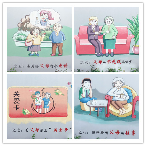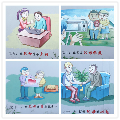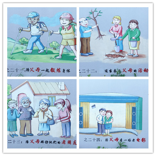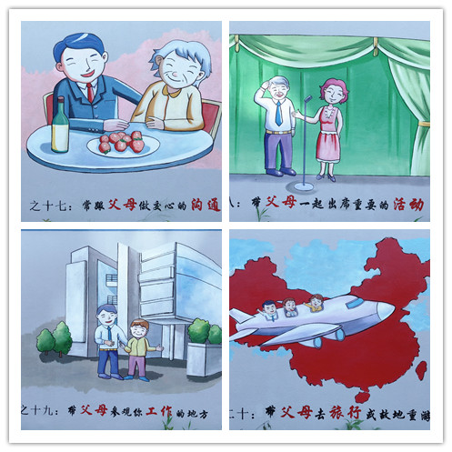 公司在基地围墙以纯手绘的方式呈现新“24孝”,营造知孝,懂孝,行孝的香港六合彩资料氛围。