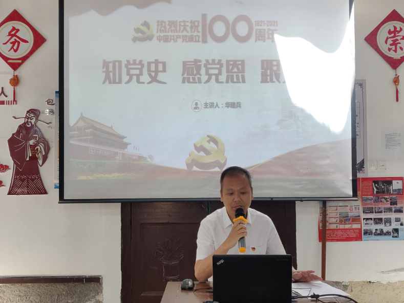 华建兵从坚定理想信念时刻不忘知党史、补足精神之钙时刻不忘感党恩、践行初心使命一心一意跟党走三方面对党的百年奋斗史进行了深入地阐述。