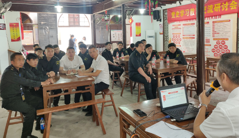 5月21日,舟山公司党委副书记、纪委书记华建兵到岱山中队指导党史学习教育开展活动,并以“知党史 感党恩 跟党走”为主题,为中队队员上党史学习教育专题党课。