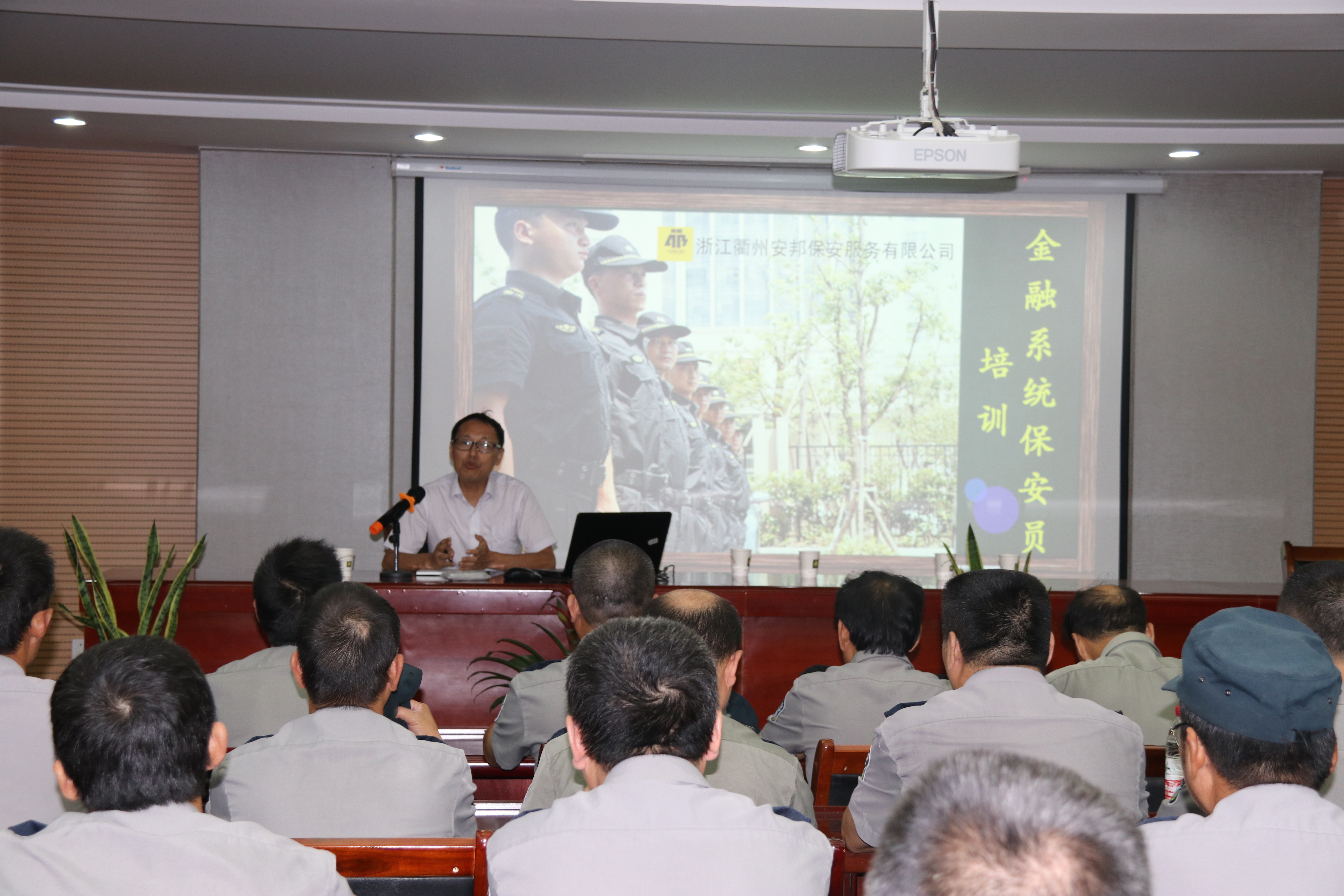 保安服务有限公司召开月度工作会议,会议由保安公司主要负责人鲁家富主持,100多名保安人员参加。浙江衢州衢江农村商业银行股份有限公司保卫部总经理余伟平、行政办公室副主任叶珺受邀参加了本次会议,并对保安员的业务技能进行了培训。