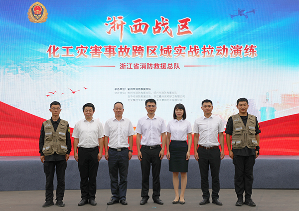 专职消防大队,浙江豪邦化工有限公司协办的浙西战区化工灾害事故跨区域实战拉动演练在衢州智造新城举行。