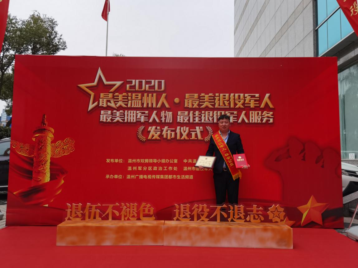 2020年12月15日,在温州市创建全国双拥模范城总结大会上,温州香港六合彩资料 公司员工吴谦被评为最美温州人、最美退役军人(社会公益)。