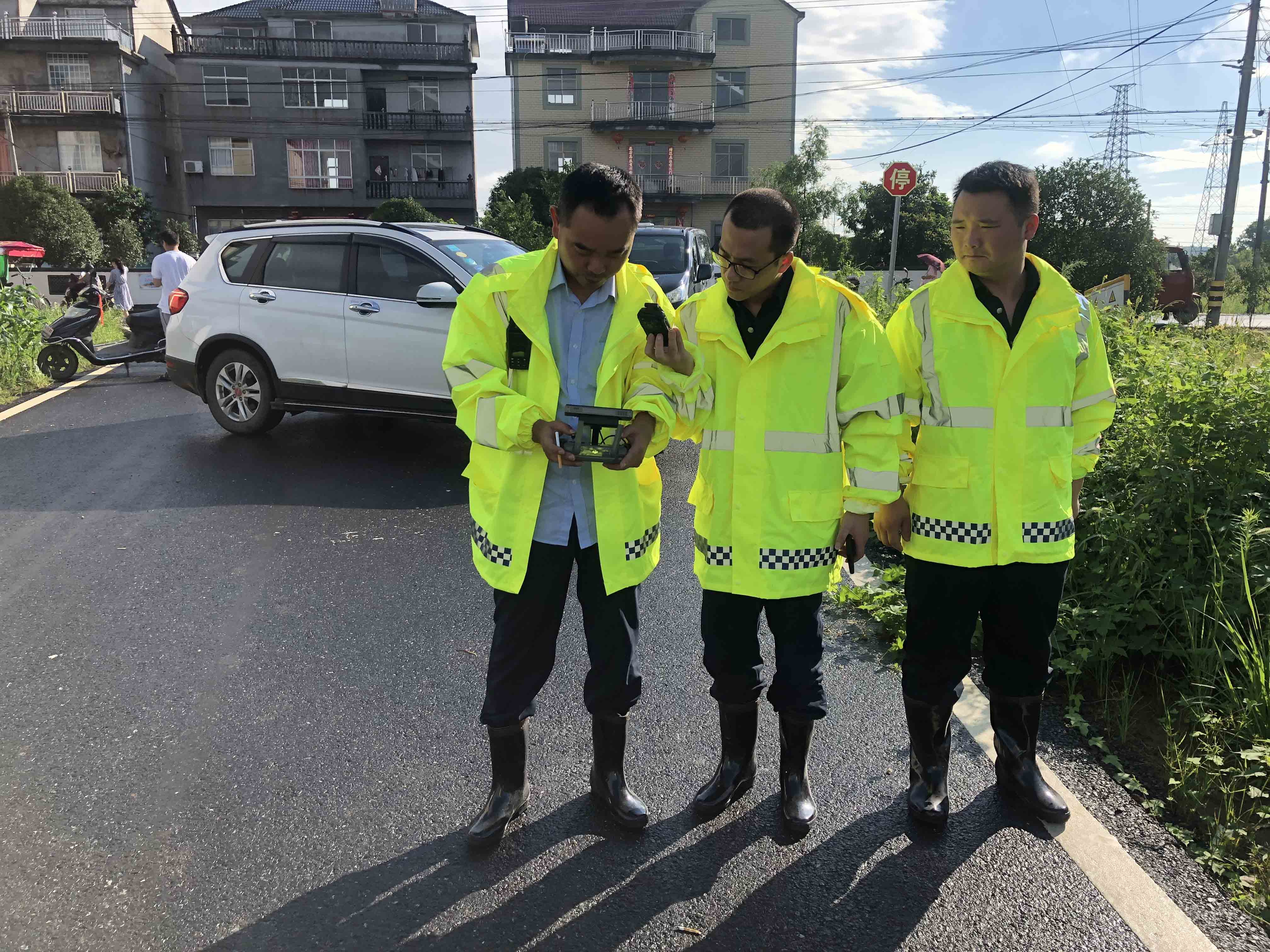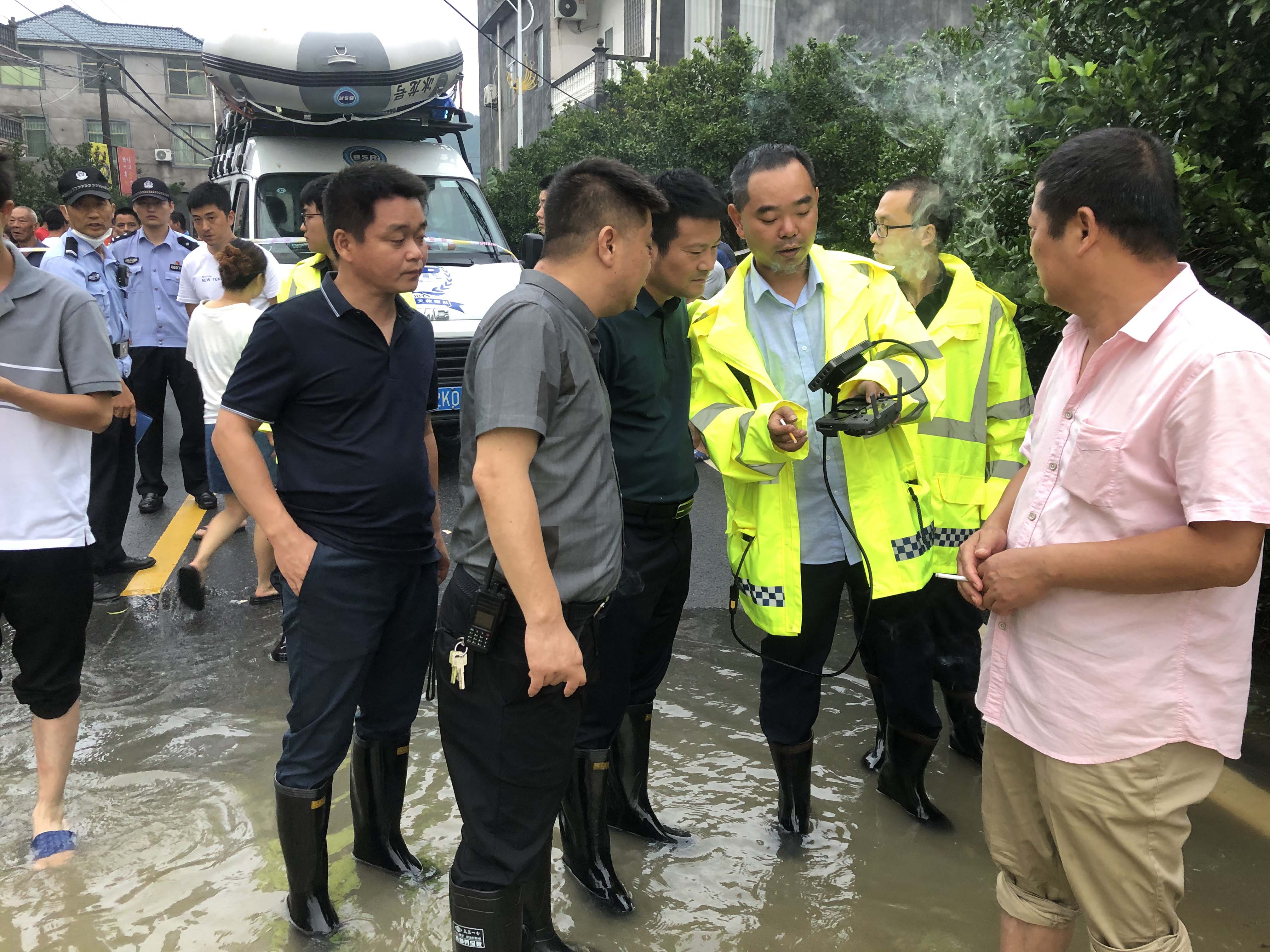 应急队迅速运用无人机及现场可视化指挥通讯设备协助航埠镇政府对受灾地区进行空中侦查,并将航拍和地面布控画面实时回传指挥中心。