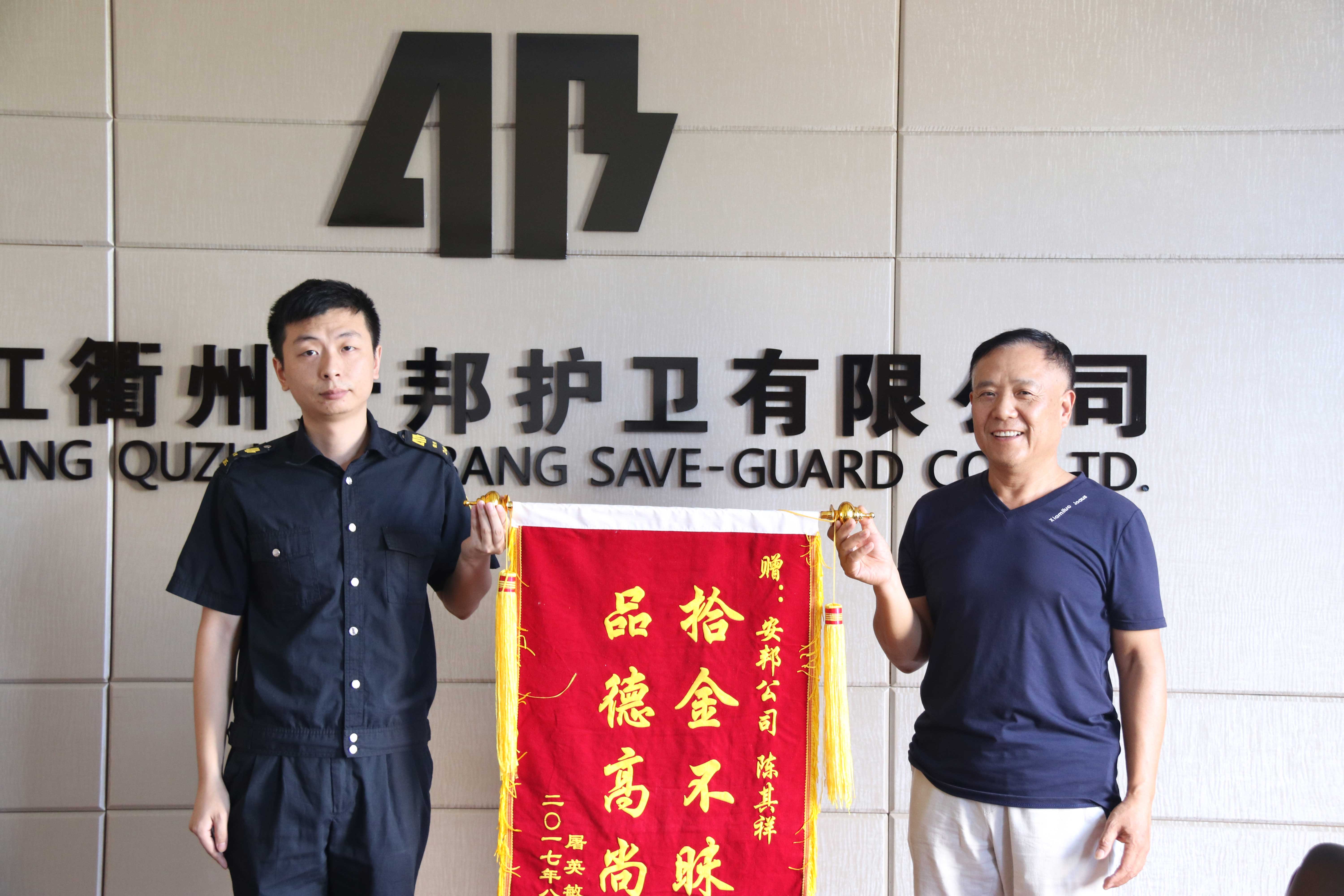 没想到保安员陈其祥一个小小的暖心举动,屠英敏老师傅铭记于心,第二天亲自送了一面“拾金不昧 品德高尚”的锦旗过来。屠老师傅说:“做好事,要表扬的!”