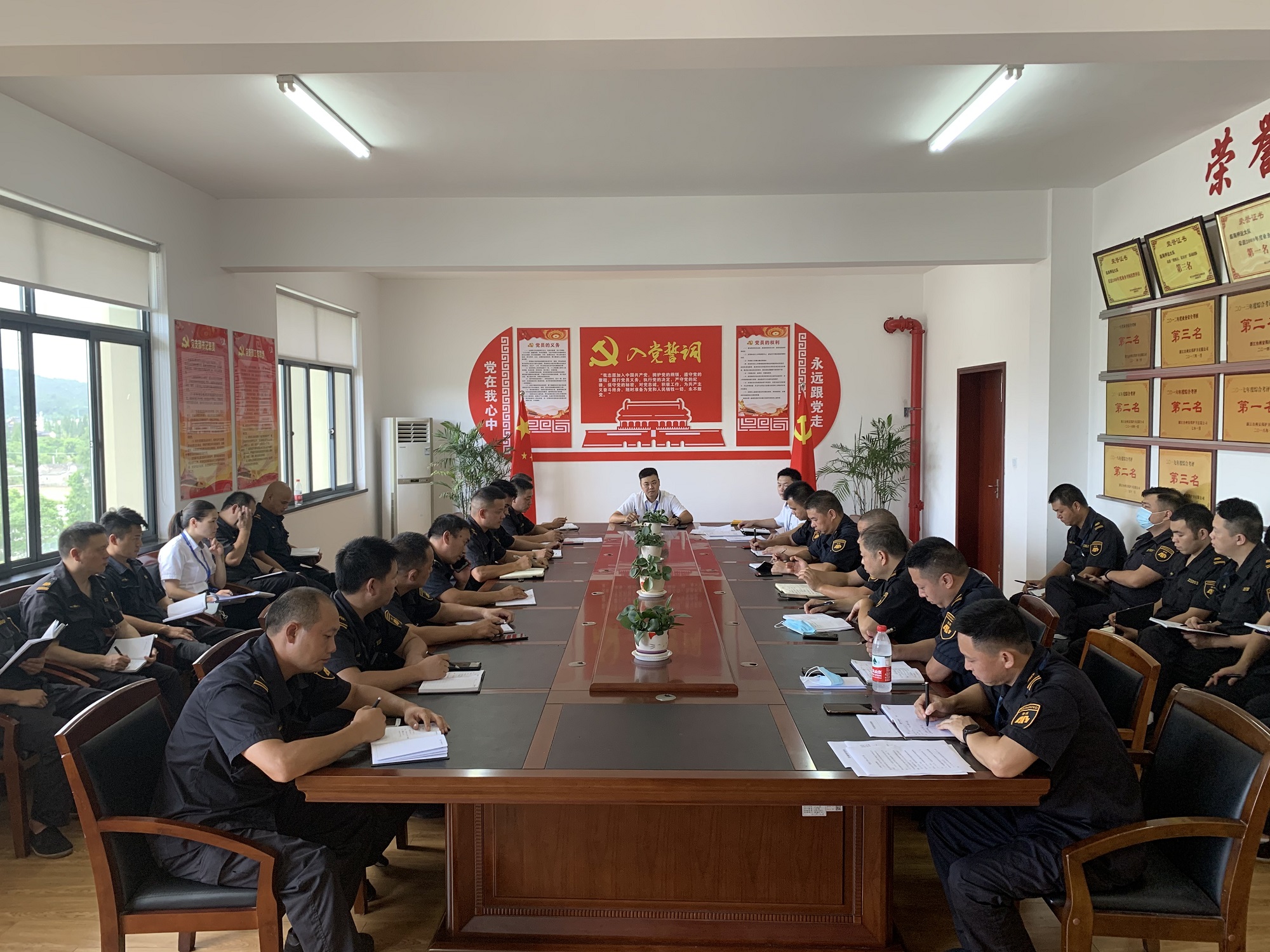 公司党委书记、董事长、李万新第一时间对防汛防台工作进行部署,各部门、大队立即响应,迅速召开防汛防台工作会议,并通过微信、钉钉工作群将防汛防台工作精神传达到每一位员工,全面动员、及时部署、有效落实。