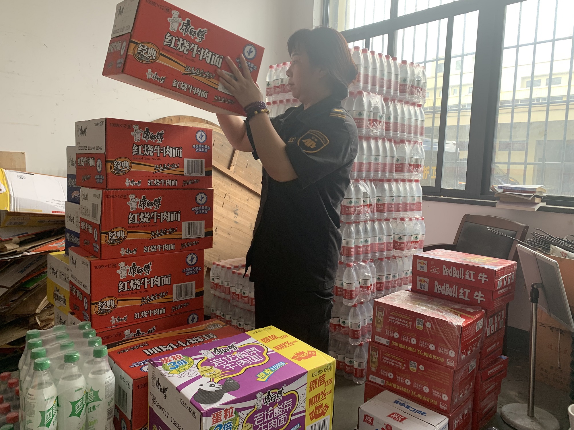 同时,各后勤单位准备了方便面、矿泉水等应急物资,以备不时之需。