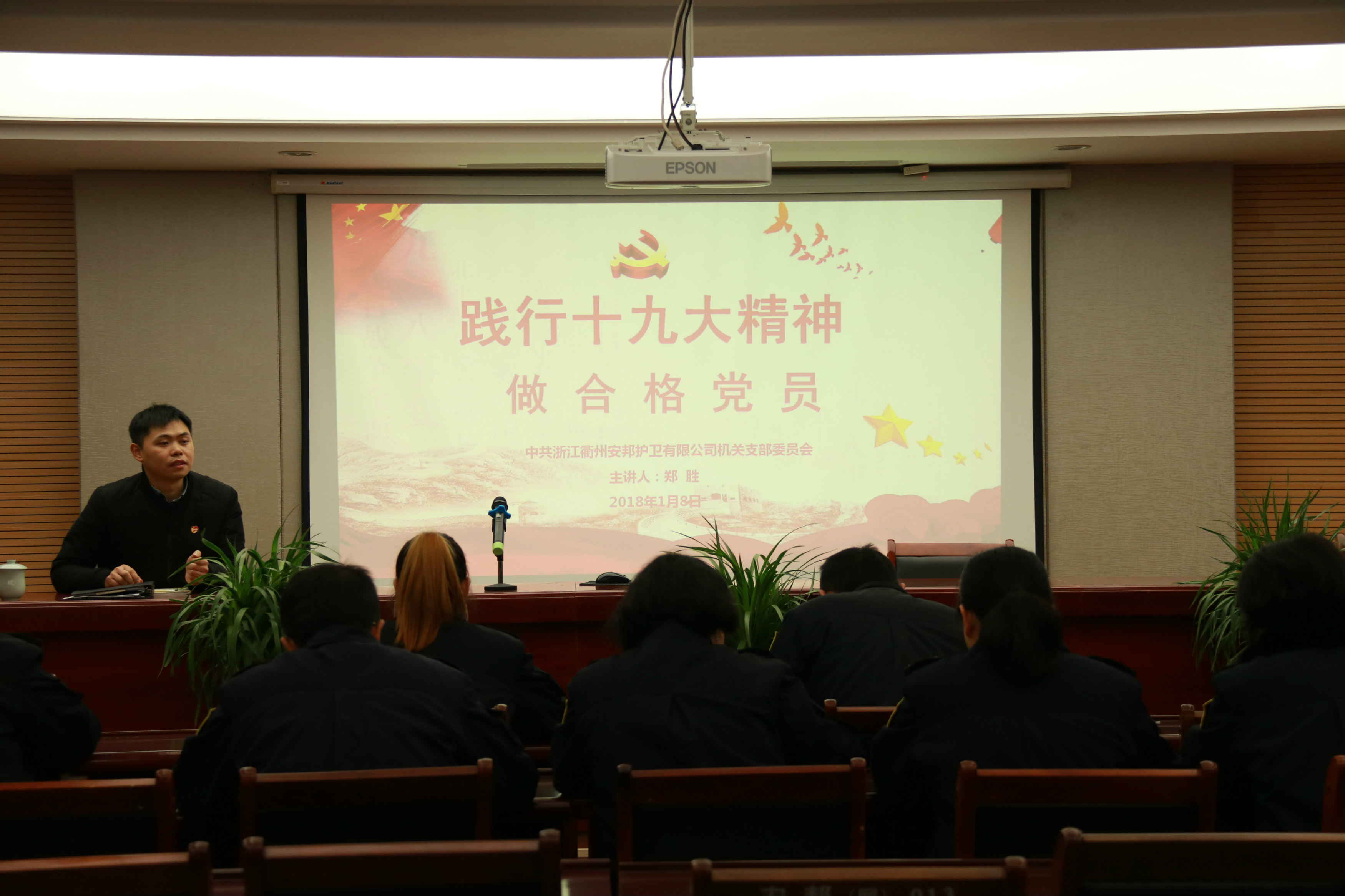 支部书记郑胜作了以《践行十九大精神 做合格党员》为主题的党课,详细阐述了合格党员的标准,如何成为合格的共产党员及十九大对党员提出的新要求等内容。他强调全体党员要以十九大精神为指导,对标合格党员要求,牢记宗旨、不忘初心,充分发挥共产党员的先锋模范作用。