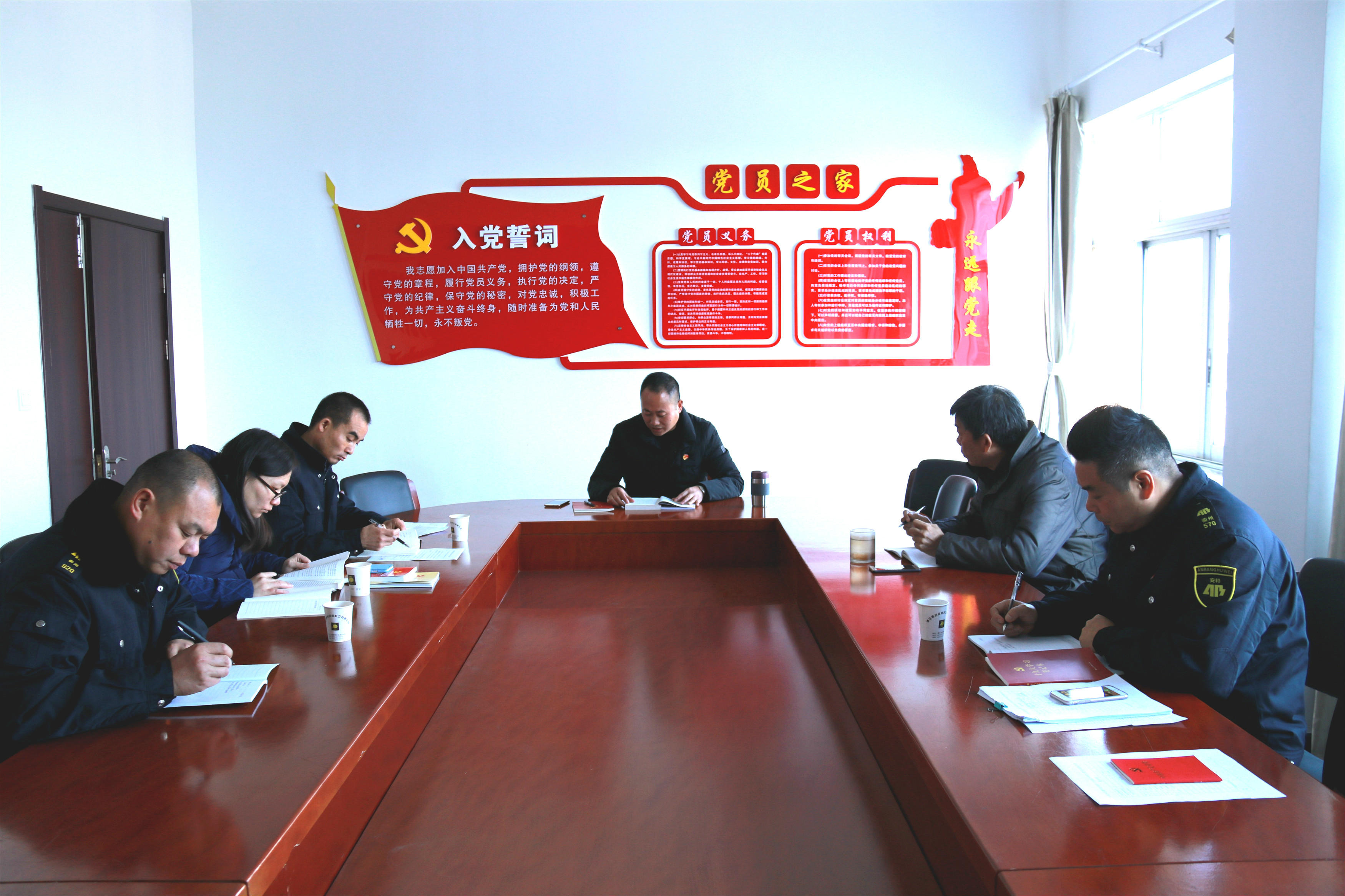 1月5日,守押大队党支部书记琚苏炳组织支部全体党员对新《党章》进行了深入学习,他强调,要认真学习新《党章》的内容,全面掌握新《党章》的精神实质,牢固树立“四个意识”,争取学深悟透,做到真正的融会贯通,以十九大精神为指引,凝心聚力,全力做好金融守押服务工作。