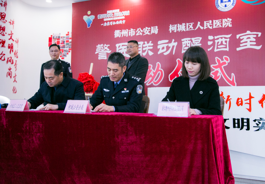 为完善常见疑难警情处置机制,保障醉酒人员的合法权益和身心健康,切实打造良好就医环境和维护社会治安稳定,1月10日上午,“警医联动醒酒室”启动仪式在柯城区人民医院7号楼举办。