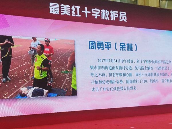2018年8月“余慈梅湖环跑”活动结束后,周勇平看到一名友面色苍白、呼吸急促、手脚发抖、即将晕倒时,他上前一把扶住病人,紧急送到一旁的村卫生院,发现病人病情加重时,周勇平立即开车把病人送到余姚二院抢救,经检查是心脏问题引起的不适,如不及时送医就治,后果不堪设想,这样的救援事例还有很多……