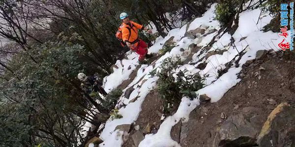 2018年1月,余姚市四明山上下雪路滑,一辆小轿车因道路积雪在行驶至四明山羊额岭景观台时,坠落至200米的深山涯里,车上5人不同程度受伤。午夜23时,接到110救援电话,周勇平携带山地装备和他的队友们立即赶往出事点,与先期到达的消防官兵、公安民警一同展开救援,发现救援环境异常恶劣,陡峭处达90度,还有一人疑似颈椎受伤,如果救助措施不当,方法不科学,可能会导致被困人员二次受伤,出现好心办坏事的难堪局面,非采取专业救援不可。周勇平和队友们返回山顶,补充救援装备器材、重新制订救助方案,直到被困5人安全脱离险境。从当时现场拍摄的视频资料中,我们看到,通过搭建专业的绳索救援系统,周勇平一个人,便将一名患者从深达200多米的沟底救起,不由地佩服他的专业技术能力带来的强大力量。
