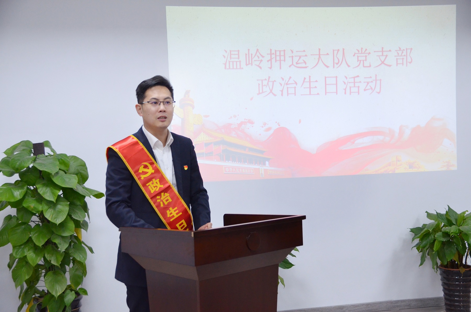 为进一步增强党员的政治意识和身份意识,3月18日,温岭大队党支部开展了党员“政治生日”活动,活动以“一次宣誓、一张贺卡、一份关怀、一段感言”为主线,通过简单而庄严的仪式,引领党员们回望政治起点,唤醒入党初心,以更加饱满的精神奋勇向前。