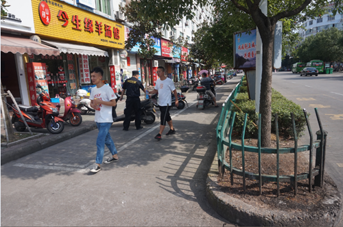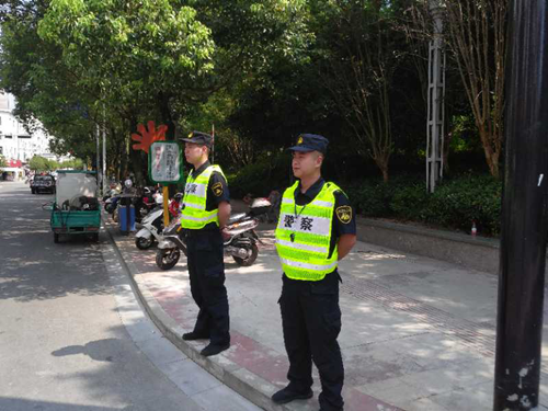 制服,走上街头,冒着酷暑,奋勇当先、齐心协力,整治违停车辆,劝导行人走斑马线,宣传交通安全知识,增强市民交通文明意识,遏制交通违法行为,为迎接国家卫生城市复审,营造了良好道路交通安全环境。
