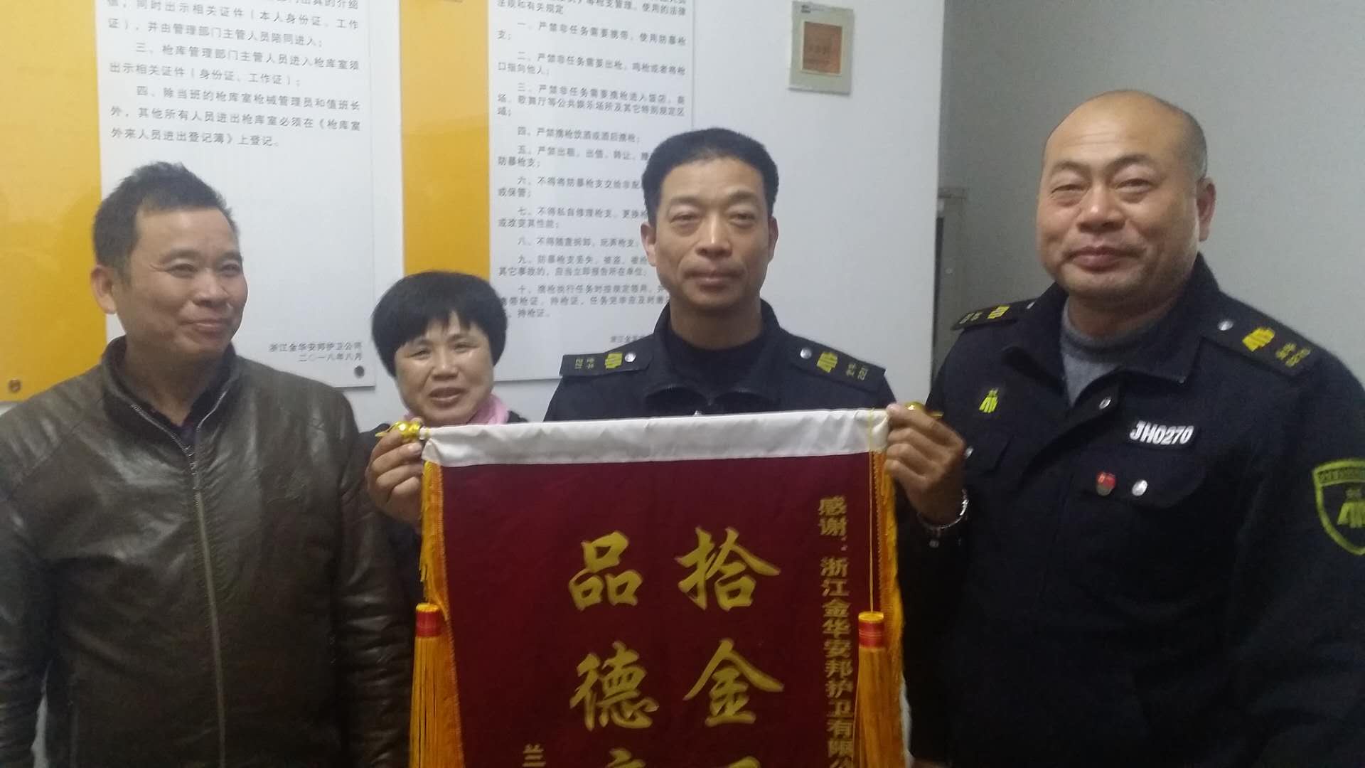 12月10日上午,兰溪市民徐女士将一面印有“拾金不昧 品德高尚”的锦旗送到金华香港六合彩资料
