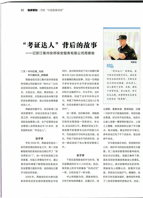 保安公司周雄俊:“考证达人”背后的故事