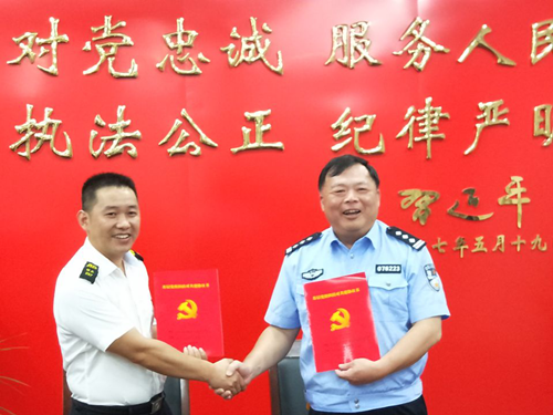 为深入开展“不忘初心、牢记使命”主题教育活动,加强警企沟通,密切警企关系,8月6日晚,云和县公安局第六党支部(即云和县交警大队党支部)与公司云和守押大队党支部举行党建共建签约仪式。云和交警大队大队长黄叶银、党支部书记叶敏,云和守押大队党支部书记倪文伟、公司党群工作部负责人等双方党员代表共同参加签约。
