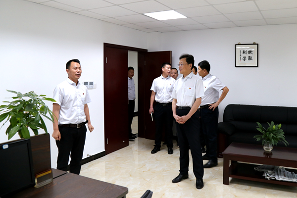 余兴才首先参观了行政大楼、监控中心、公司党建和文体活动设施,他一边察看工作环境,一边不时询问相关工作情况,详细了解公司业务运营和基地管理状况。