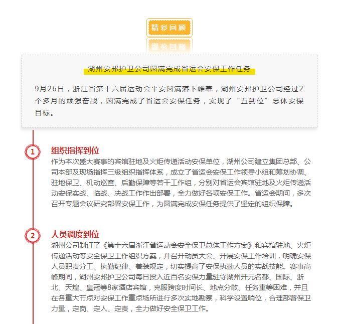 湖州香港六合彩资料 公司圆满完成省运会安保工作任务