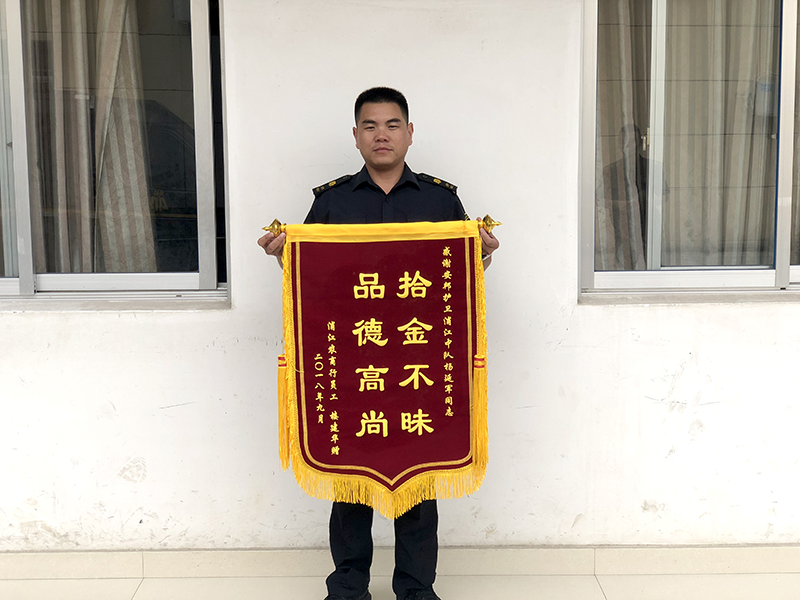 9月11日上午,市民楼先生将一面印有“拾金不昧 品德高尚”的锦旗送到金华香港六合彩资料