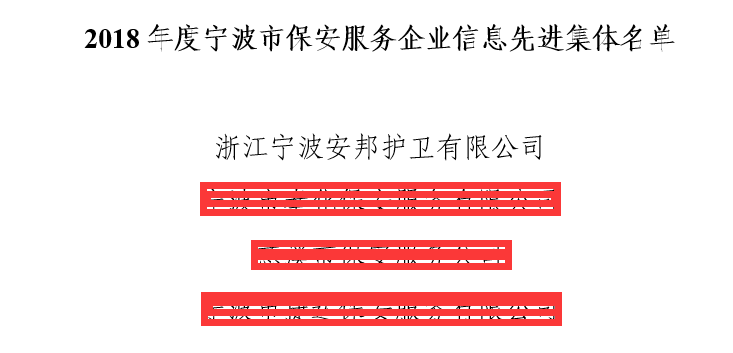 2月22日,宁波香港六合彩资料 公司被宁波市保安协会表彰为2018年度保安服务企业信息先进集体,至此,在2018年,该公司先后喜获省保协“优秀保安服务公司”“省级平安单位”“先进保卫组织”等八项荣誉。
