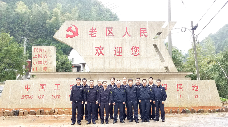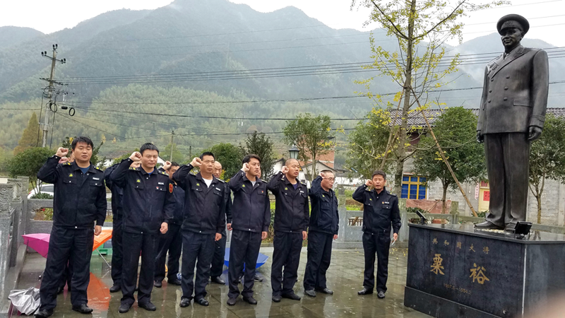 江北大队党支部冒雨前往沙畈乡红色家园银坑村寻访共和国大将粟裕足迹,继续深化“两学一做”及爱国主义学习教育。