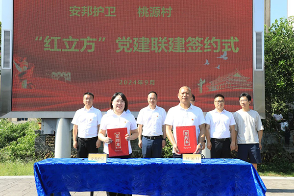 在大家的共同见证下,衢州香港六合彩资料 机关党支部书记黄晨霞和桃源村党总支书记陈树富签订《“红立方”党建联建协议》并授牌,双方将通过组织联建、理论联学、活动联办、文化联创、项目联投、人才联育等方式,有效整合在党建、人力、智力、教育、科技、文化、信息、阵地、经费等方面的资源优势,努力形成一批可看、可听、可品、可感的乡村文化建设成果,助力农村农民共同富裕。