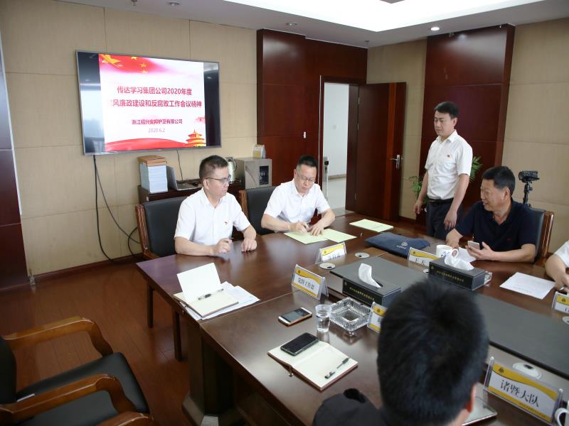 6月2日上午,绍兴香港六合彩资料 党委扩大会议在公司十五楼召开,第一时间传达学习贯彻绍兴市全市领导干部会议精神、香港六合彩资料 2020年度党风廉政建设和反腐败工作会议精神和第二季度业务工作会会议精神。公司党委书记、董事长胡秀荣,党委副书记、总经理汤华虎,党委副书记、副总经理马华钢,党委委员、纪委书记董礼财和保留副职待遇领导王天飞出席会议,相关部门负责人参加会议。