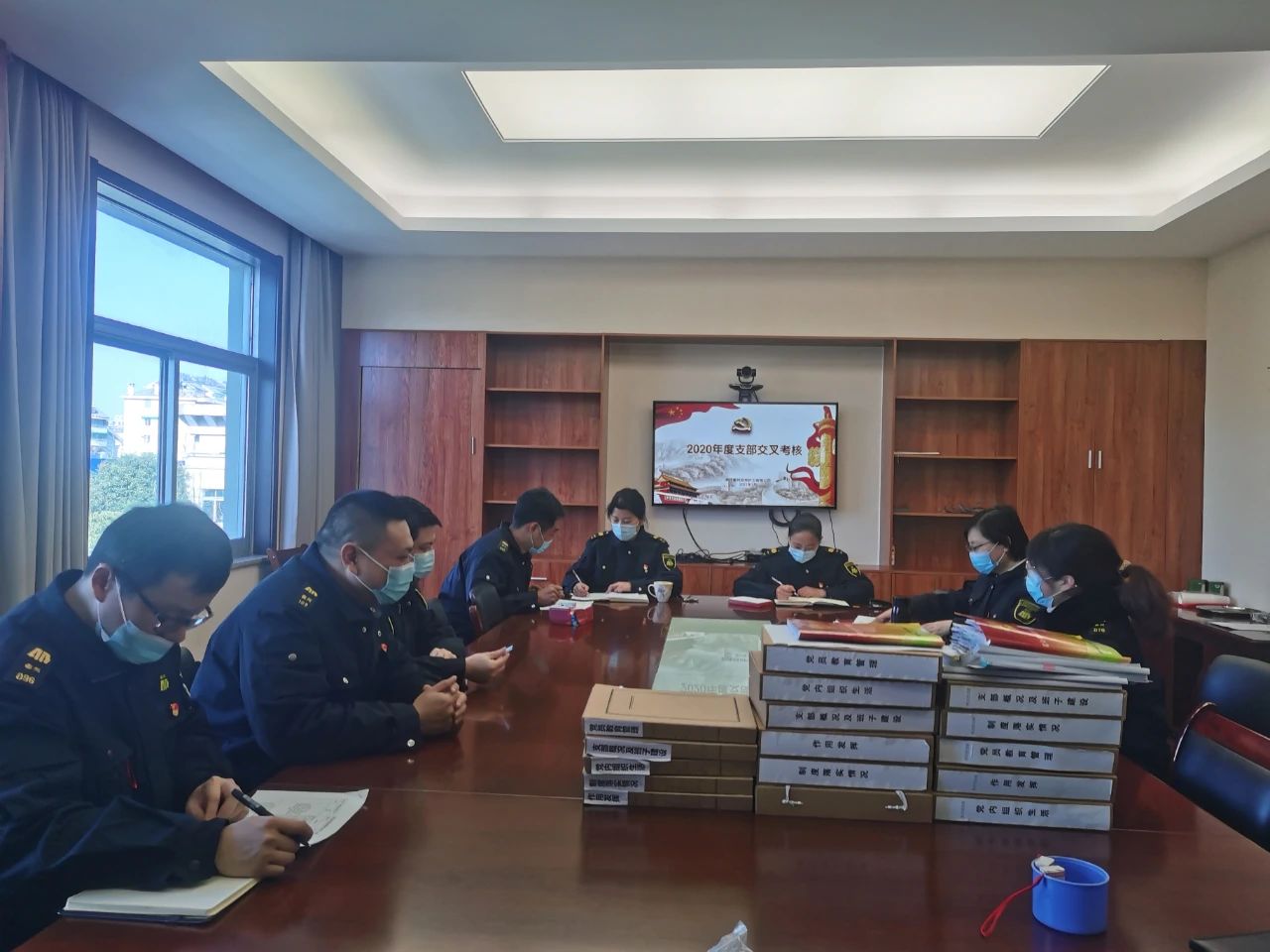考核小组采取“查、阅、审”方式,交叉审查支部2020年度党建工作资料。一“查”,按照支部“堡垒指数”考评标准,认真查看《党支部标准化手册》、支部年度工作计划、“三会一课”、主题党日等落实情况;二“阅”,重点查阅会议记录、党费收缴台账等相关资料;三“审”,考核小组组员抽查支部资料后,询问支部开展相关活动的情况,看工作是否具体落实到位。