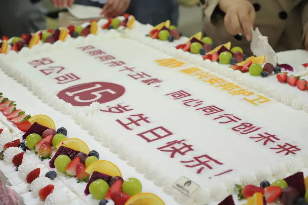 中午时间,公司还特意为员工们准备了丰盛的午餐、公司15周年庆生大蛋糕和刻有“每个人都了不起”、“十五芳华、感恩同行”、“凝心聚力、再创辉煌”等祝福语的定制可乐。十五年的风风雨雨与酸甜苦辣,此刻汇聚成幸福与甜蜜,化成灿烂的笑容绽放在每个人脸上。