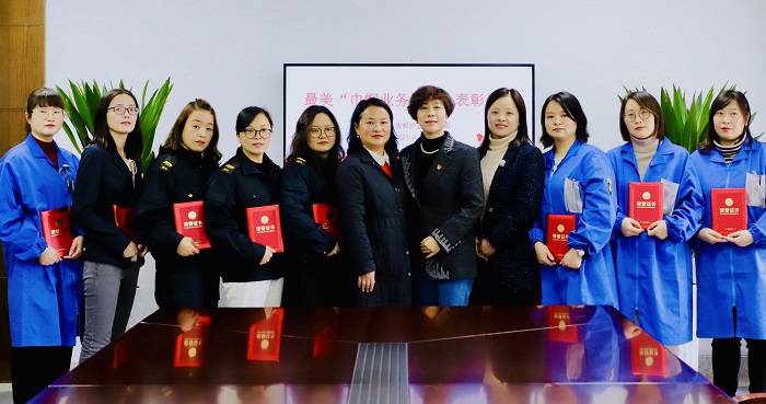3月8日,公司工会举办最美“巾帼业务能手”表彰活动,工会主席周敏为8名在评选中脱颖而出的女职工颁奖。他们在平凡的工作岗位上兢兢业业、恪尽职守,在公司“转型强体、创新强企”中发挥了“半边天”的作用,彰显了巾帼不让须眉的精神风貌,为广大女职工树立了榜样,也为公司妇女工作注入生机和活力。