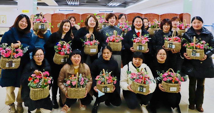3月7日公司开展“芬芳花艺 绽放美丽”为主题的插花活动,丰富公司女职工的文化生活,增加生活情趣,在工作之余享受诗情“花”意。康乃馨、小玫瑰、桔梗、满天星等花材在大家的巧手下,变成了一个个色彩缤纷的花篮。